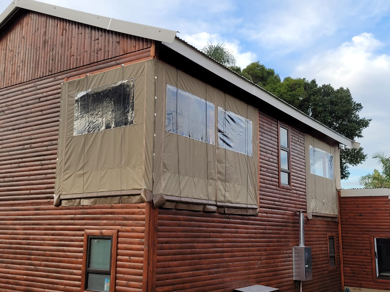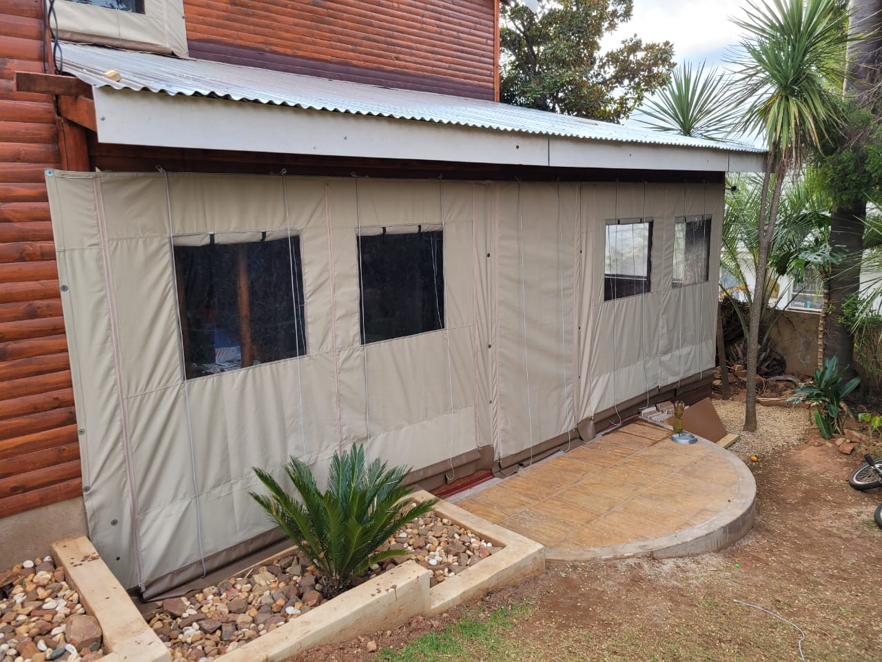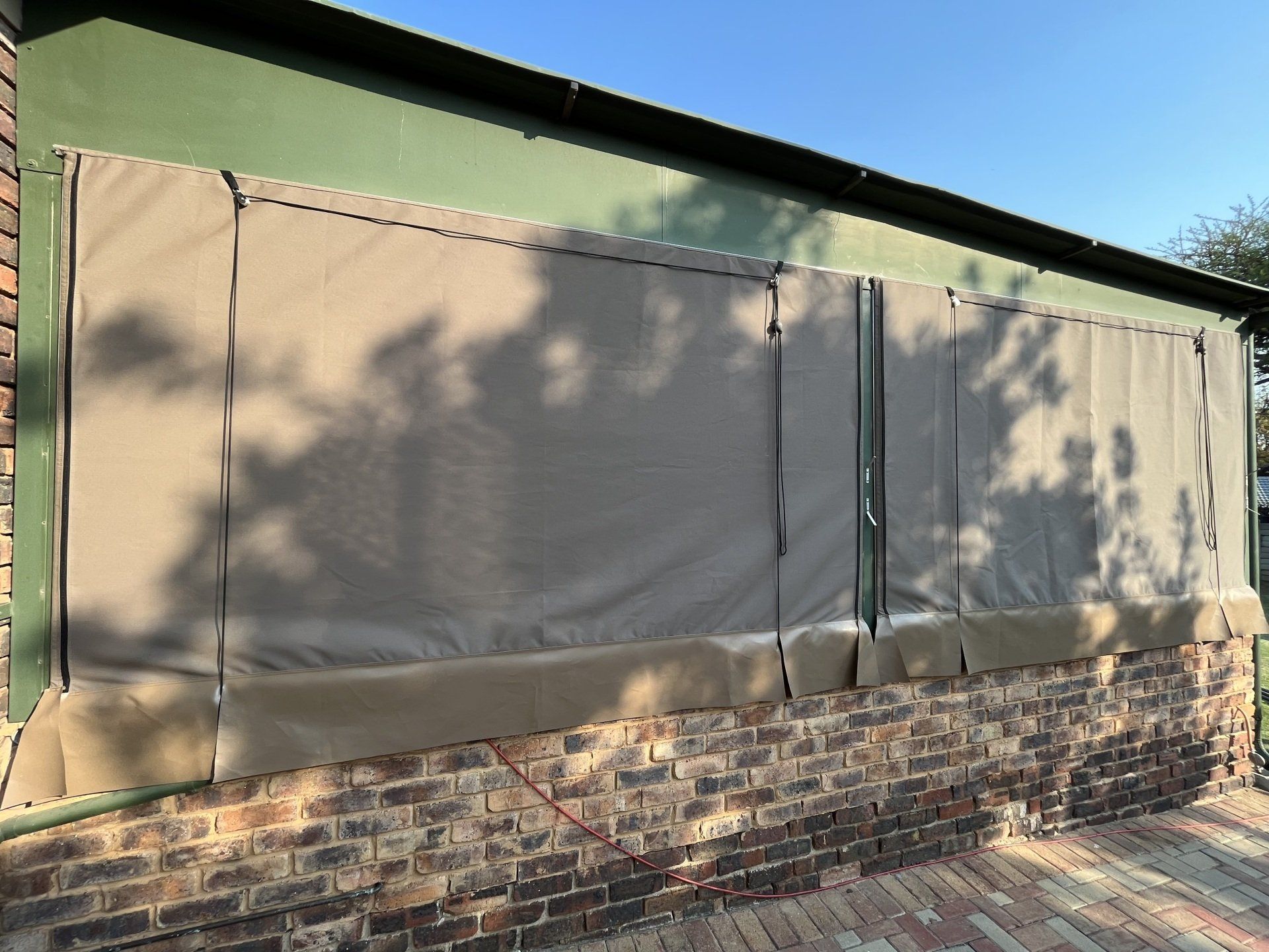 Our awnings come in a great variety of shapes and sizes. You can choose from aluminium, pvc and canvas fabric. Our Ripblock/Riptech range are made out of the same material used in military standard tents. All materials have a 8 year guarantee and have been treated with UV protection and are easy to clean. Feel free to view our gallery for all the different types.