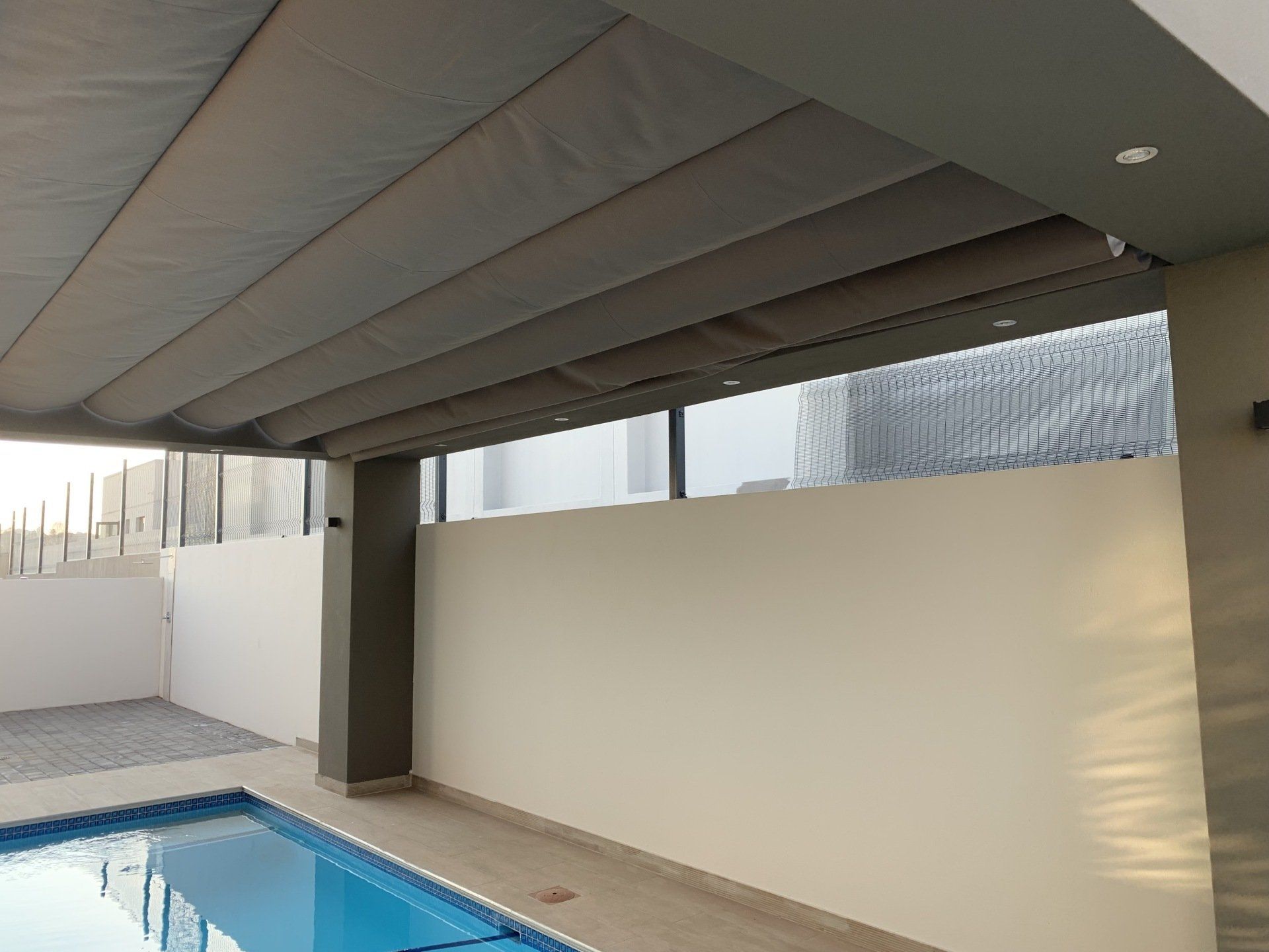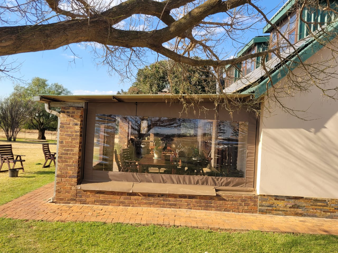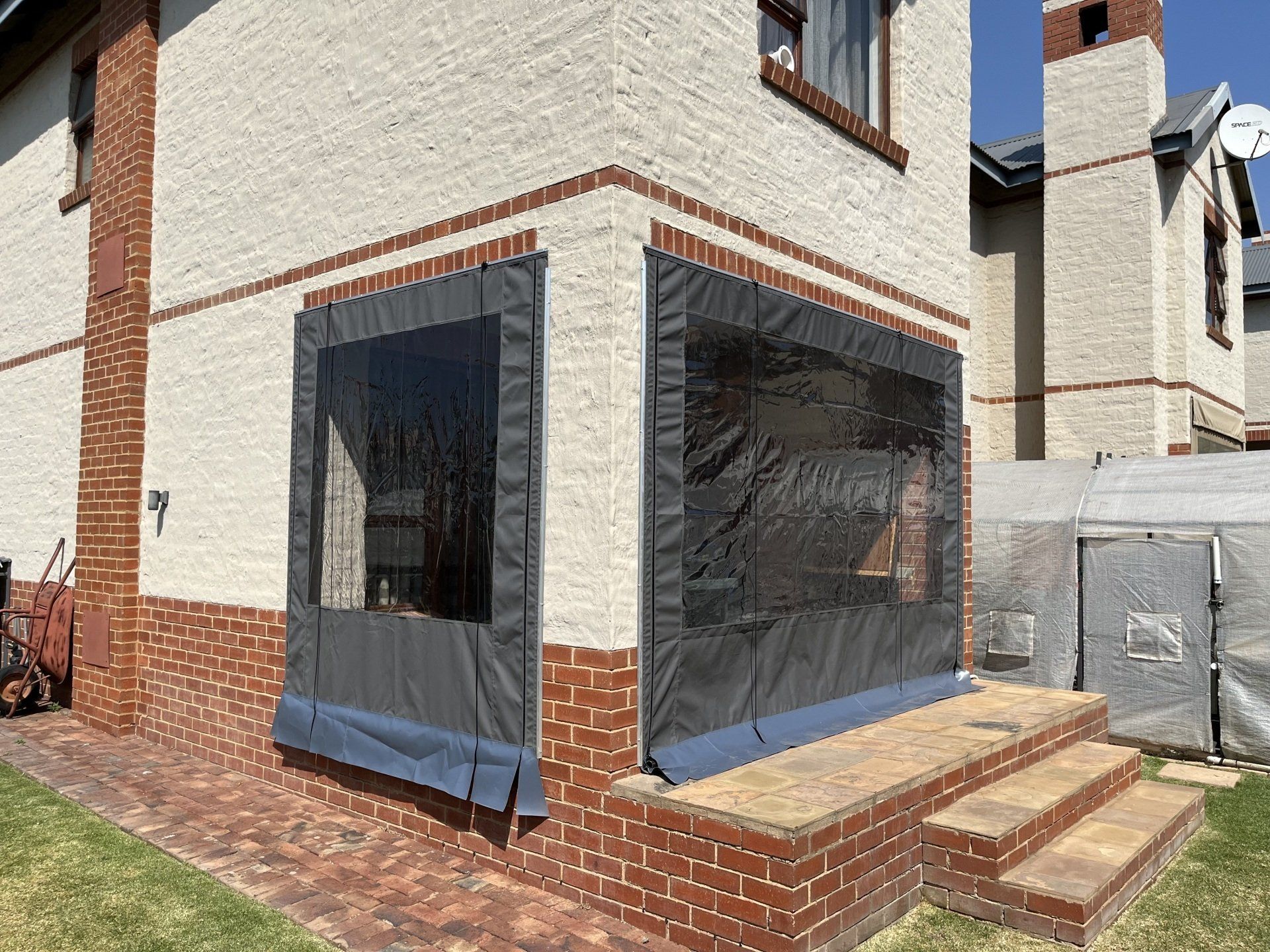 Our awnings come in a great variety of shapes and sizes. You can choose from aluminium, pvc and canvas fabric. Our Ripblock/Riptech range are made out of the same material used in military standard tents. All materials have a 8 year guarantee and have been treated with UV protection and are easy to clean. Feel free to view our gallery for all the different types.
